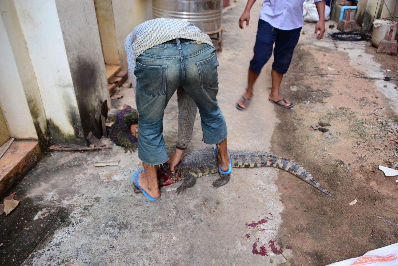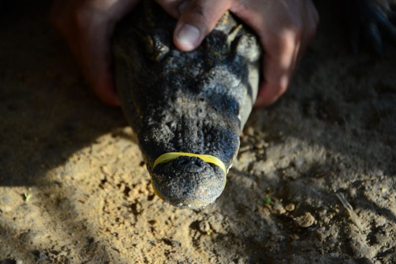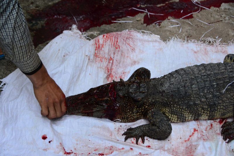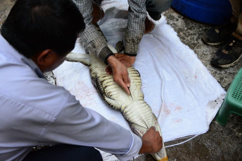 最初は暴れていたワニも、血液の減少ともに少しずつおとなしくなってきました。