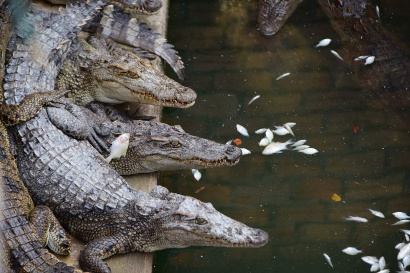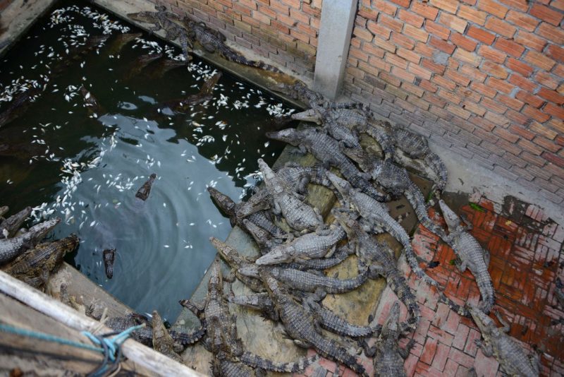 ワニの養殖場兼民家はシェムリアップだとトンレサップ湖の近くに多いです。