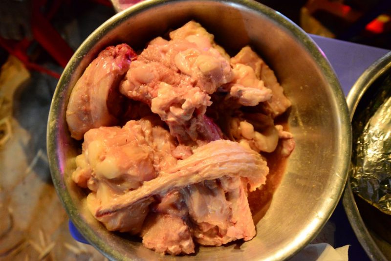 ということで、お肉になりました。ちなみにまん中下あたりの長いのはシッポ部分です。骨も硬く包丁を入れるのは大変・・・。
