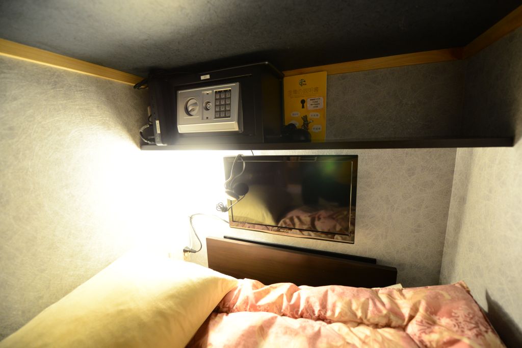 各ベッドに金庫、パソコン、テレビ、テーブル、無料WiFi、電源など完備。すげえ!