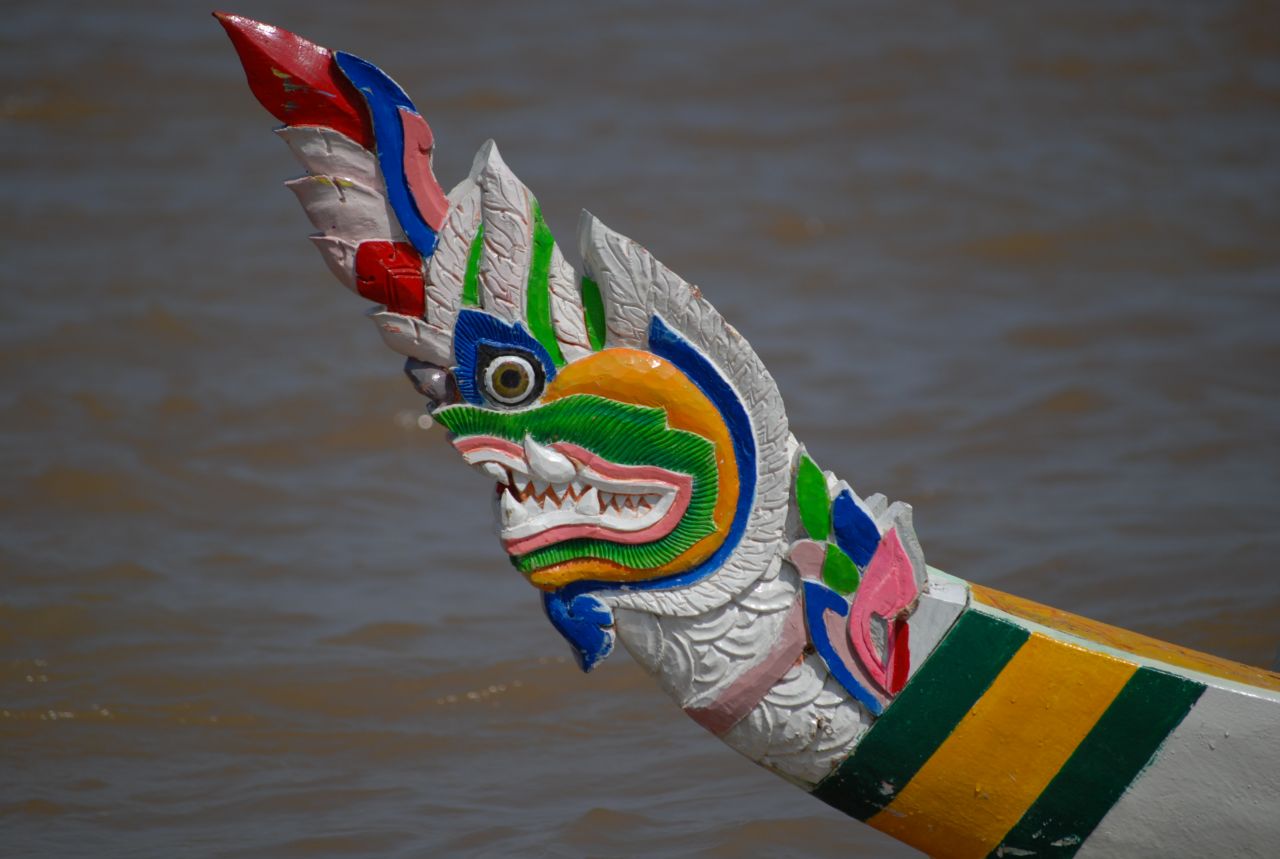 プノンペンの場合、ドラゴンボートに乗った選手たち(大きい船だと一隻に40人以上!)がトンレサップ川上から王宮前のゴールまでものすごいスピードで櫓をこぎ、流れていきます。また夜間には花火や灯篭流しなどのイベントや多くの屋台が登場し、ショッピングや食事なども楽しめます。