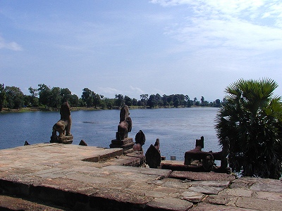 東西700m、南北約300mもある王のための巨大な沐浴の池。あまりにも大きい池ですので当時は象が水浴びしようとして追い出す事もあったそうです。池の真ん中には塔があったのですが現在は崩れており、乾期の水が少ないときに少しだけ見る事ができるくらい。また、ポルポト時代はこの池でもお米を作っていたそうです。場所はバンテアイクディ遺跡の前にあります。