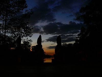 【今日のカンボジア】アンコールトム 南大門 日暮れ時 えー、南大門のお堀に沈んでゆく夕日と残光です。 人みたいなものは水の神ナーガを引っ張っている神々です。 08/12/2006 投稿先 アンコール遺跡, 今日のカンボジア⇔ヤフーブログ ← 過去の投稿へ 次の投稿へ →