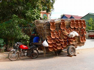 【今日のカンボジア】時代の流れ えー、見ての通り時代は流れています。 以前は牛車で陶器を売り歩いてたのですが、バイクにレベルアップ。 その後、第3フェーズに入り手作り車です。 今後どうなるのか模索中。 18/12/2006 投稿先 今日のカンボジア⇔ヤフーブログ ← 過去の投稿へ 次の投稿へ →