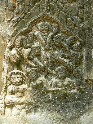 下・クバールスピアンにも似た彫刻があるがあちらはワニの下が削り取られている