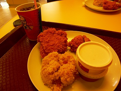 【今日のカンボジア】ケンタッキーフライドチキン KFC とうとうオープンしました。 お待ちかねのKFC。場所はモニボン通りASIAホテルの1階です。 現在、まだバーガーの販売は始まっておらず、チキンとご飯セット等(2$ほど)があります。 気になるお味はというと、ううむ、少しオイリー。2つは食べられない。 16/03/2008 投稿先 レストラン・食事, 今日のカンボジア⇔ヤフーブログ ← 過去の投稿へ 次の投稿へ →