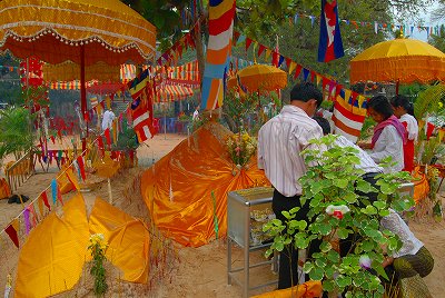 【今日のカンボジア】クメールニューイヤー あけましておめでとうございます。 4月13日カンボジアの新年を迎えました。 よくわからないのですが、今年は男性の神様が18:24に降臨されたとのこと。 当日は雨が降ったので、翌日することもなかったのでアンコールワットに行ったのですが、ものすごい人の波でした。 ドンドンチャーンという音楽が聞こえてきたのでワット横のお寺に行くとお坊さんが、食べ物や飲み物を寄進した人々の為にお祈りしてました。 その他、お寺の境内では盛られた砂山に人々が喜捨を施し、ぐるぐる回ってました。 17/04/2008 投稿先 今日のカンボジア⇔ヤフーブログ, 坊主コレクション ← 過去の投稿へ 次の投稿へ →
