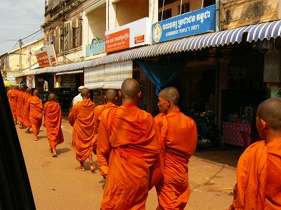 お坊さんの行列。ラオスのルアンパパーンみたいだが、あまり多くはない。