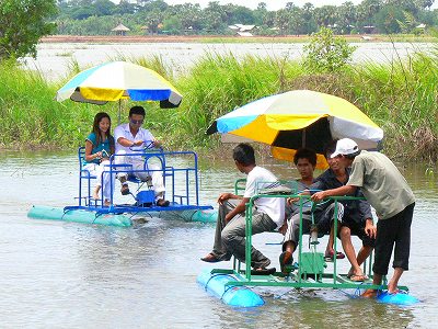 【今日のカンボジア】プノンペンの新型足こぎボート さて、この前プノンペンの近くの大きな水溜りで見つけた新ボートです。 かなり安く作った感じですが、大人5人乗っても沈みません。 ちなみに1回80円くらいで、結構繁盛してました。 24/08/2006 投稿先 今日のカンボジア⇔ヤフーブログ ← 過去の投稿へ 次の投稿へ →